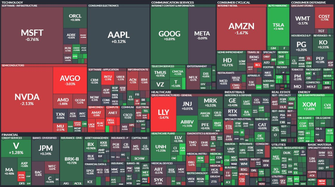- 이에 브로드컴(-3.03%), AMD(-1.87%), TSMC(-4.74%), ASML(-1.28%), ARM(-2.40%), AMAT(-2.24%), 마이크론(-2.17%)등 여타 반도체 업종도 동반 하락.