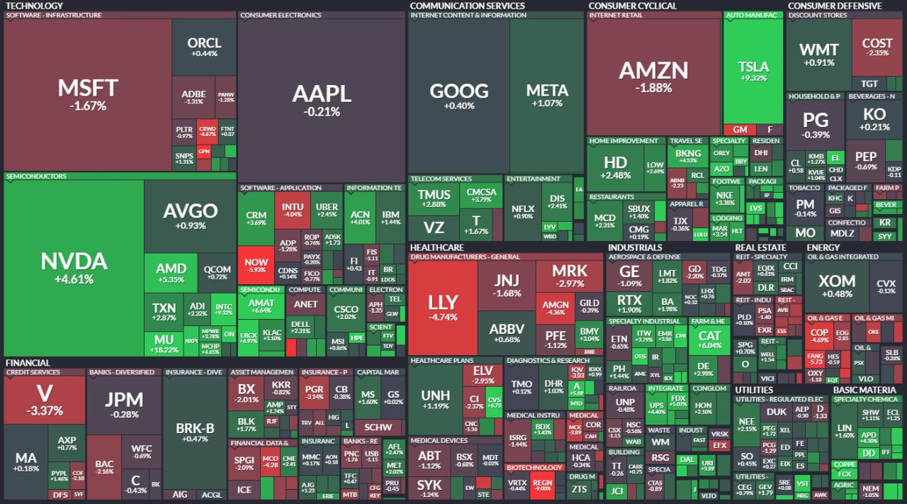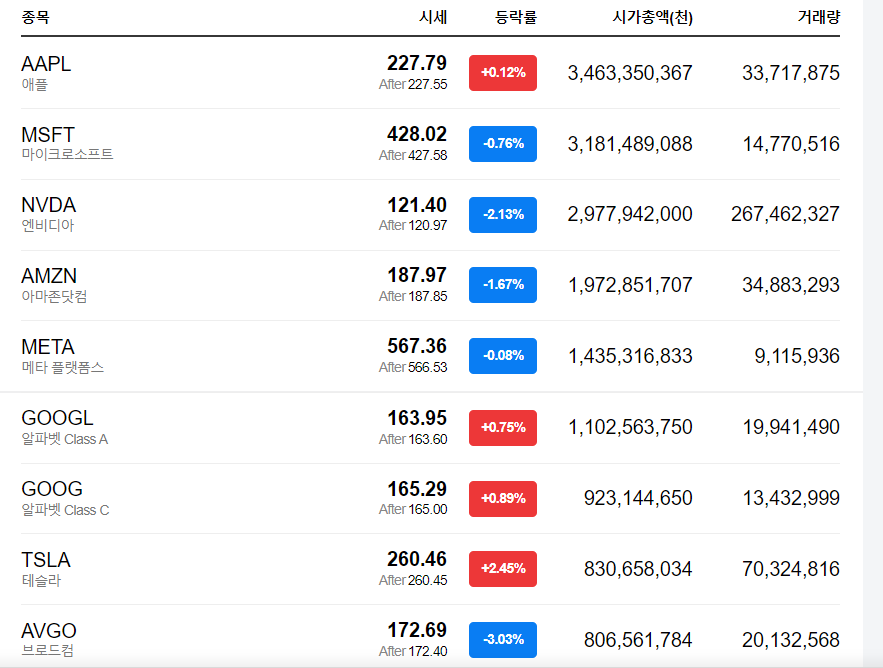 - 특징 종목: 엔비디아, 일본 기업 하락 Vs, 테슬라, 중국 기업 강세