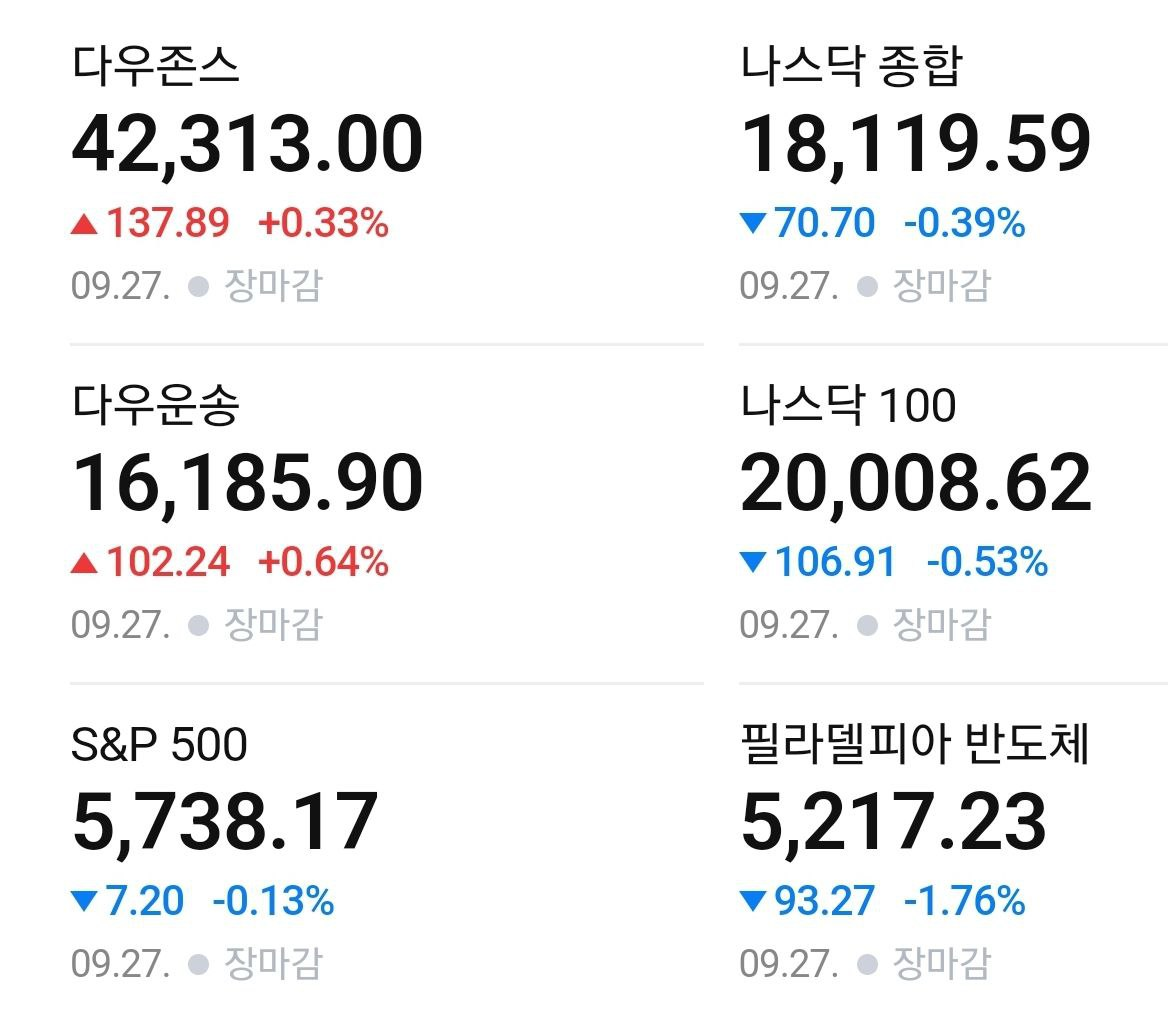 - 09/30 미 증시, 엔비디아 부진에도 연준 정책 기대에 힘입어 혼조 마감