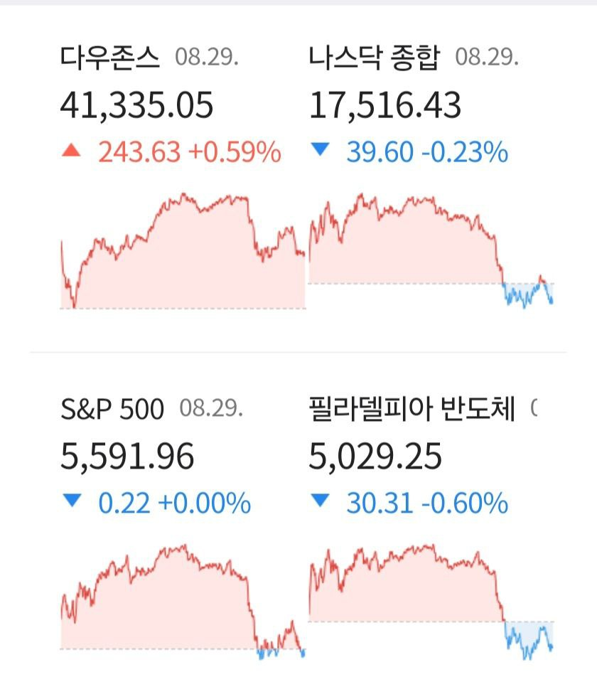 - 08/30 나스닥, 견고한 경제지표에 상승 후 엔비디아 여파로 장 후반 하락 전환