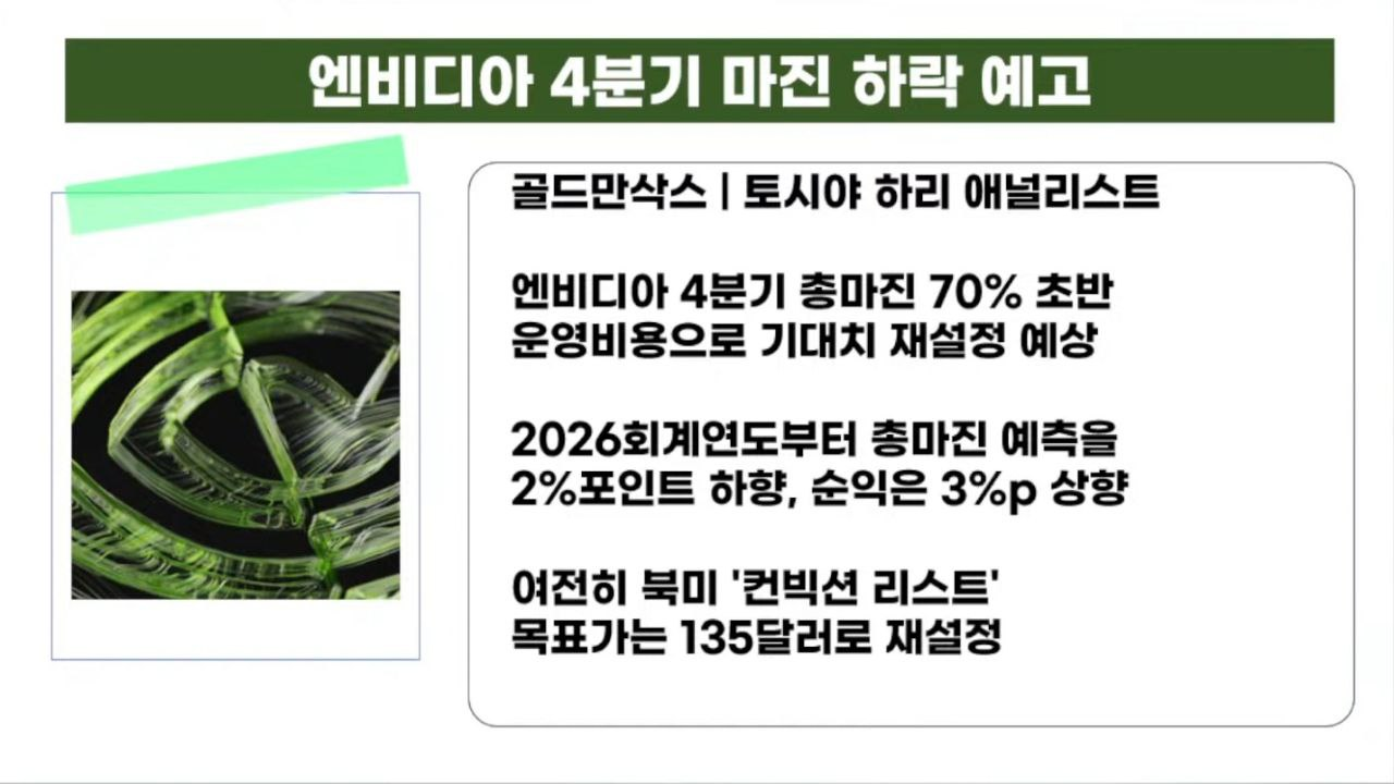 - Bernstein: 엔비디아의 목표 주가를 $130에서 $155로 상향 조정, '시장 수익률 상회' 등급 유지.