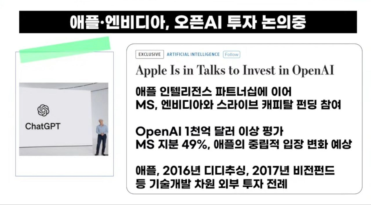 - 애플, 결국 오픈AI 주주되나…1000억 달러 가치에 투자검토