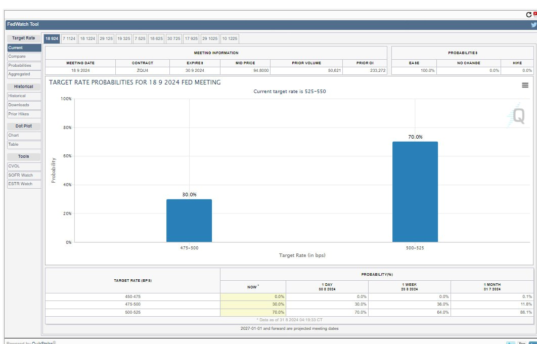 - 금융시장은 연준이 9월에 금리를 25bp가 아닌 50bp '빅 컷' 인하할지 여부는 이번 주 발표되는 고용 지표에 달려있다고 보고 있다.