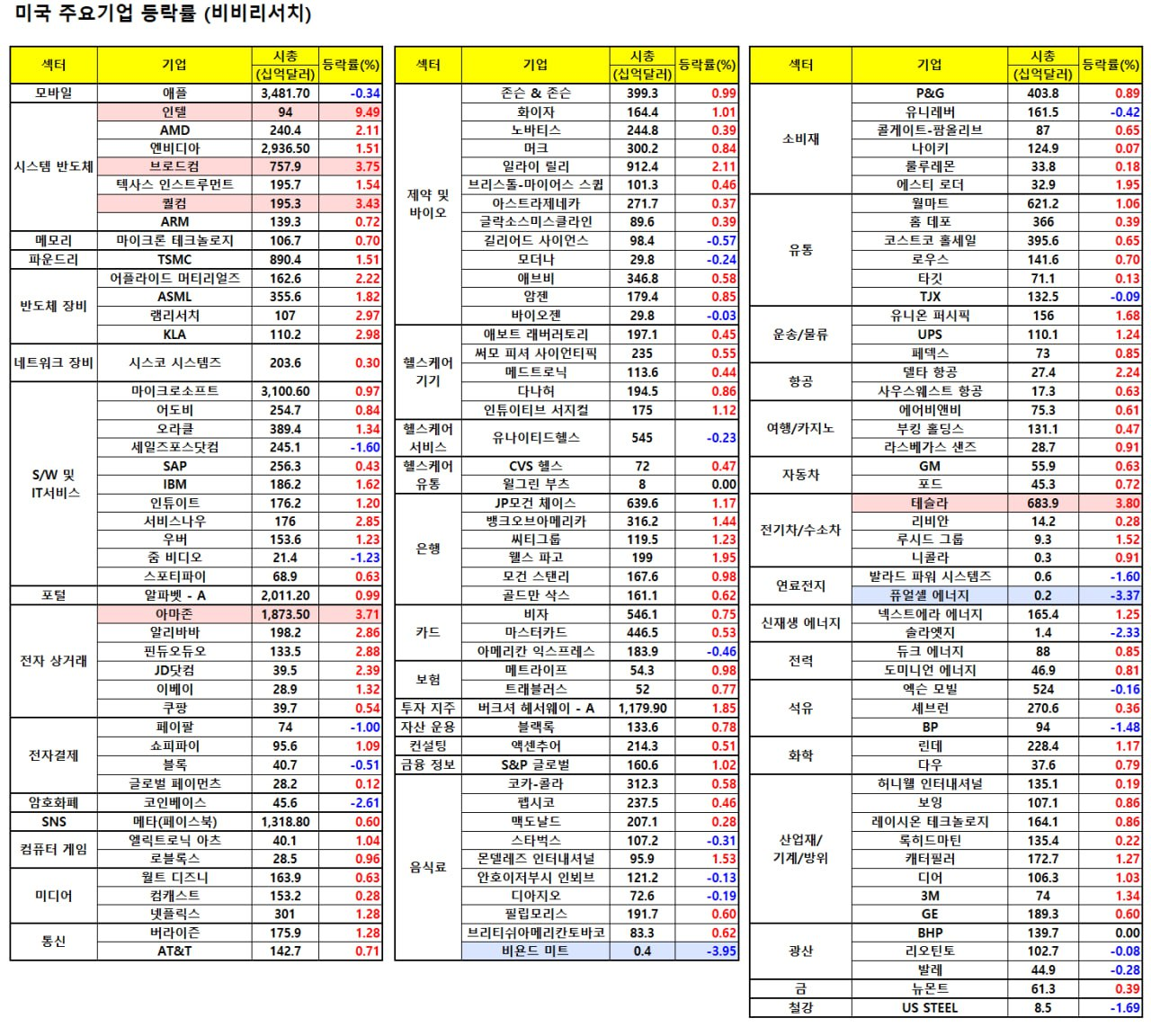 - AI 관련주 대세 꺾였다 보다는 주가 부담 정도 반응