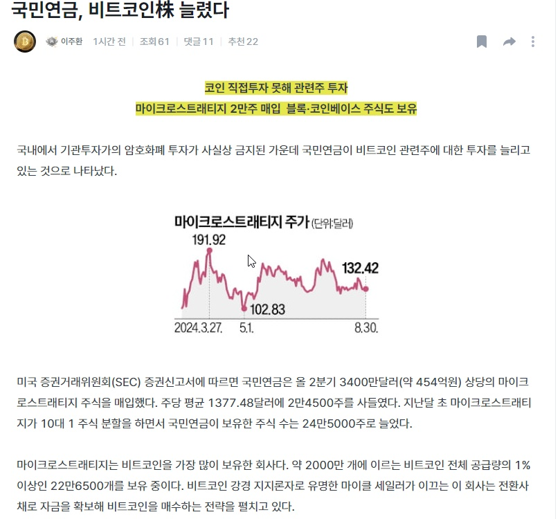 세일러가 버핏을 이겼다…마이크로스트래티지, 비트코인 구매후 1천% 상승–투자 수익 54억달러 마이크로스트래티지는 첫 비트코인 구매 이후 주가가 1000% 올랐습니다. 워런 버
