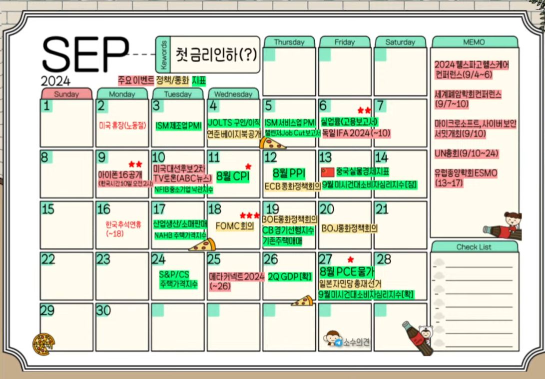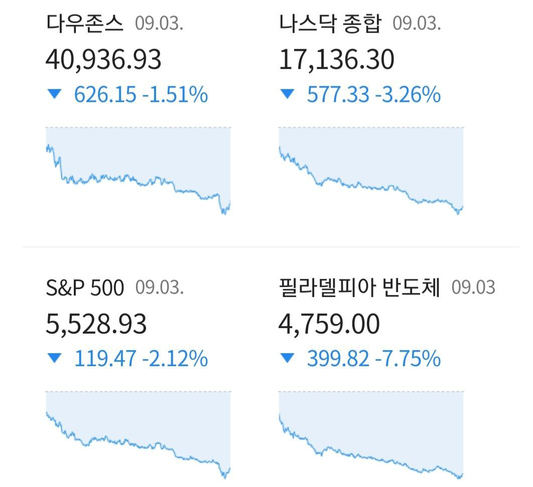 - 09/04 미 증시, 8월 초 경제지표에 대한 기억 속 위험자산 회피심리 확대되며 하락