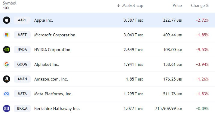 - - 엔비디아는 9.5% 하락하고 마이크로소프트도 1.9% 하락. 필라델피아 반도체 지수는 7.8% 하락함.