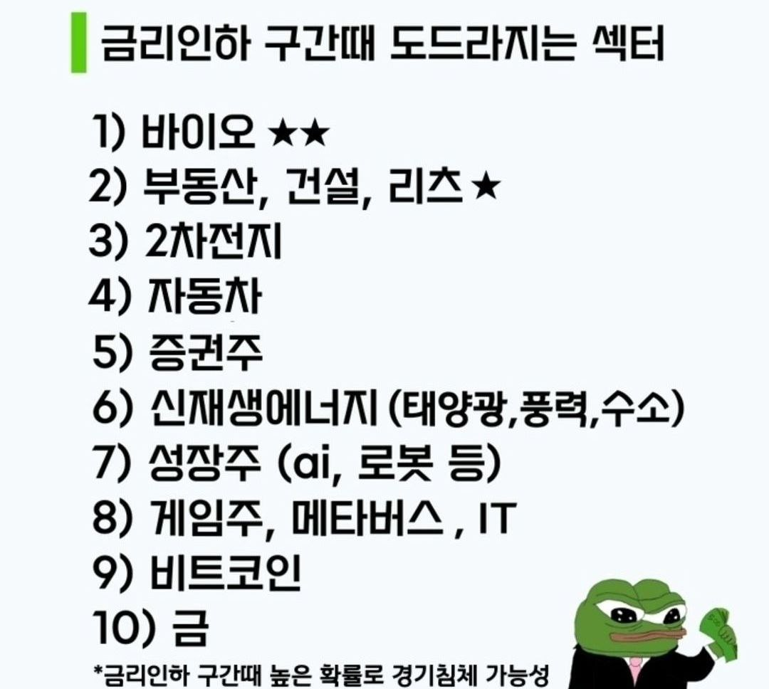 - 금리 인하는 시장의 유동성을 개선하고, 기업들의 자금 조달을 수월하게 해 수익성을 개선한다.