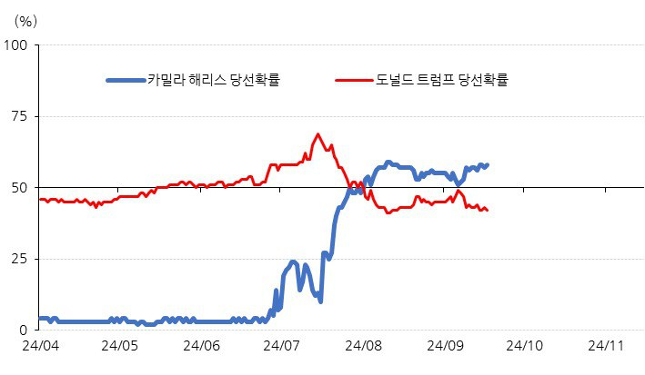 - 폴리마켓 “해리스, 6개 경합주에서 4곳 앞서” …트럼프와 승률 격차 더 벌렸다