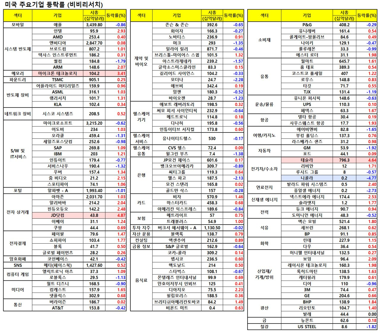 - 테슬라 4%, 마이크론 약 3% 오르며 나스닥 견인