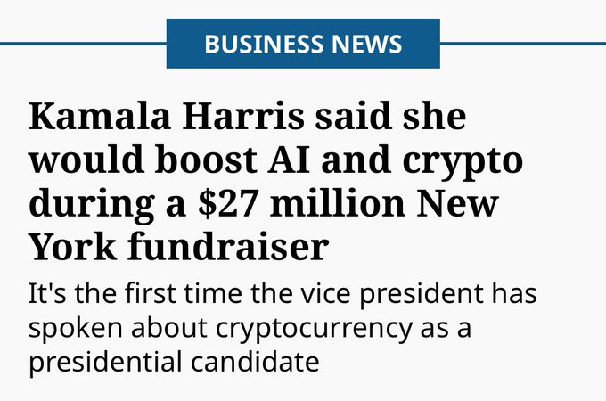 - 해리스 가상화폐산업 육성 관련 첫 발언- 해리스 부통령은 이날 “미국의 경쟁력과 미래에 투자할 것이다”며 “인공지능과 디지털자산과 같은 혁신적 기술을 장려하는 동시에 소비자와 투자자를 보호하겠다”고 말했다.