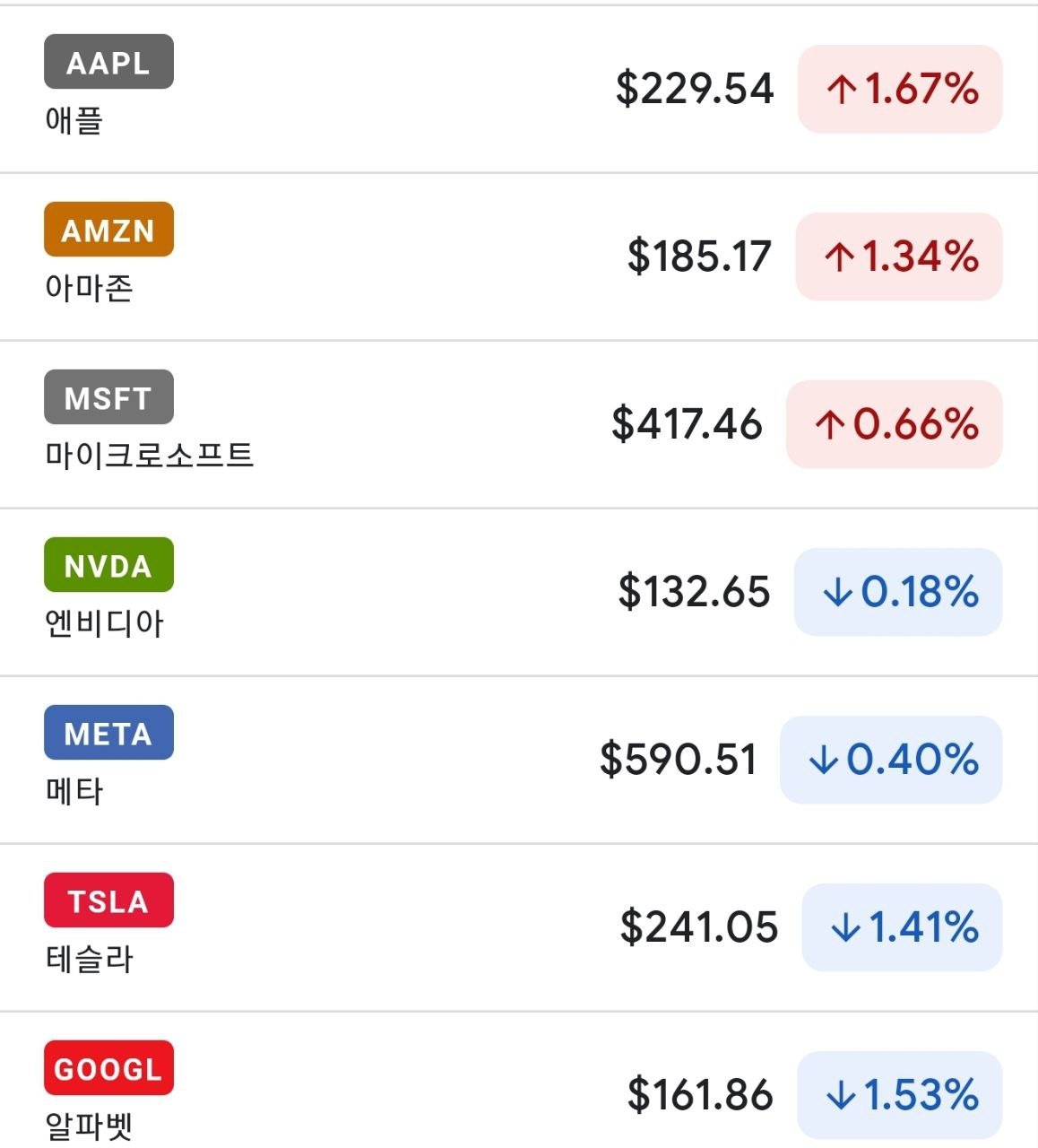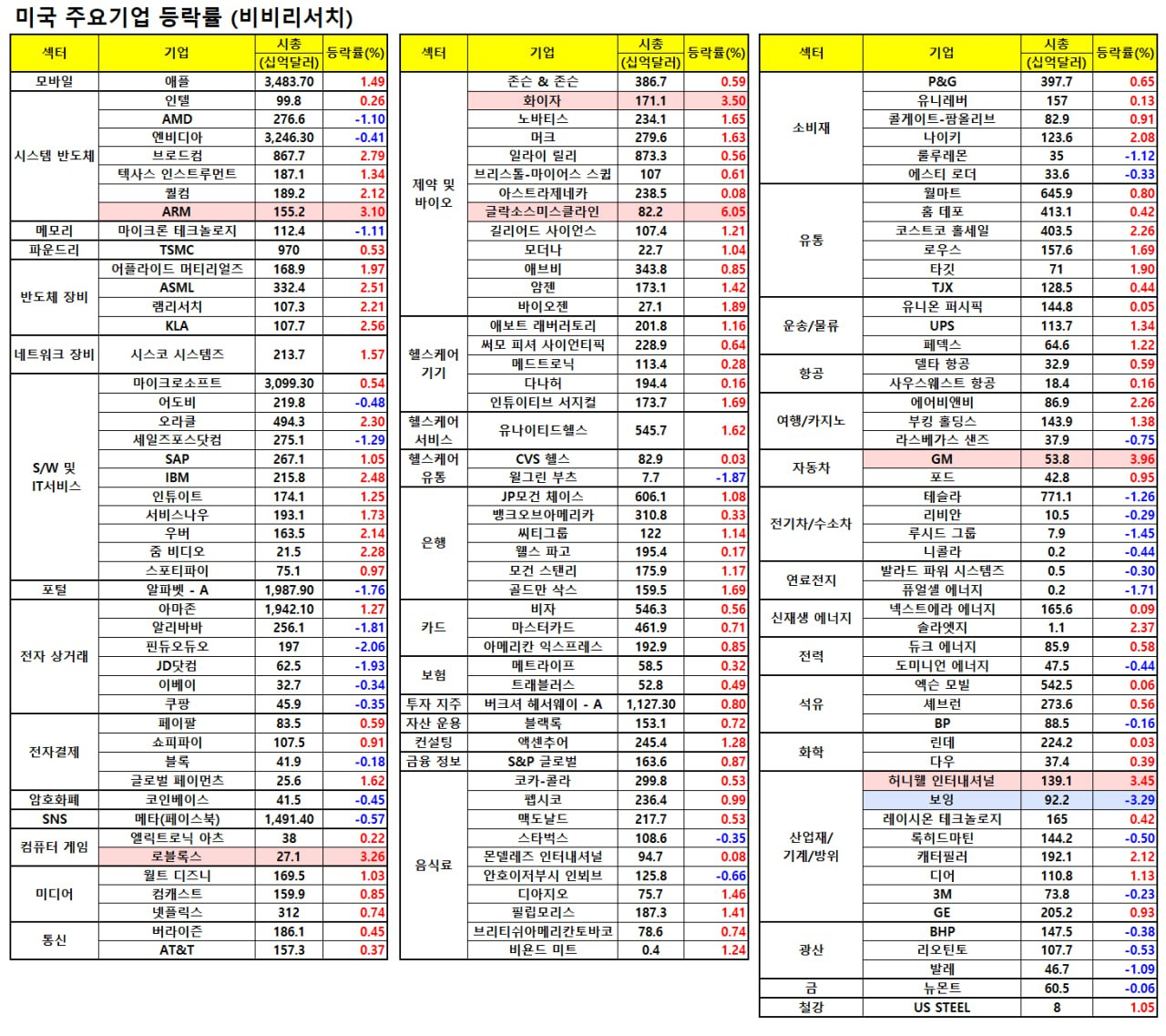 - *특징 종목: 알파벳, 기업분할 우려로 하락