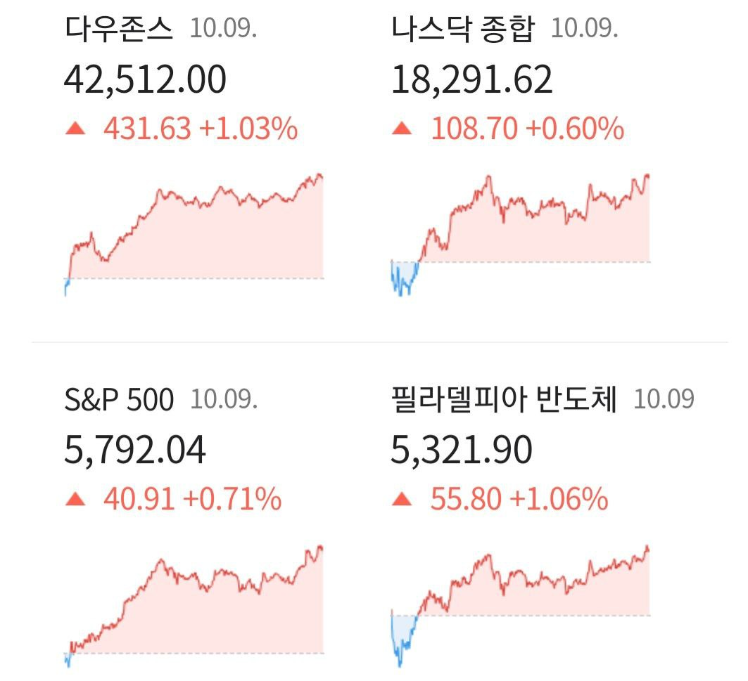 - 10/10 미 증시, 양호한 투자 심리 속 개별 종목의 힘으로 다우와 S&P500 신고가 경신