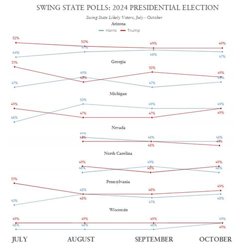 - “트럼프 7개 경합주서 4승2무1패…전국에선 해리스가 앞서”