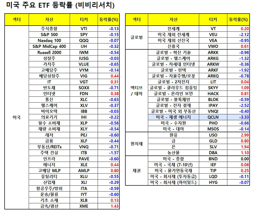 - 메타 플랫폼(-1.13%)은 BMO캐피탈이 목표주가를 상향 조정했지만 최근 상승에 따른 매물 소화 과정과 AI 수익화 우려로 하락.