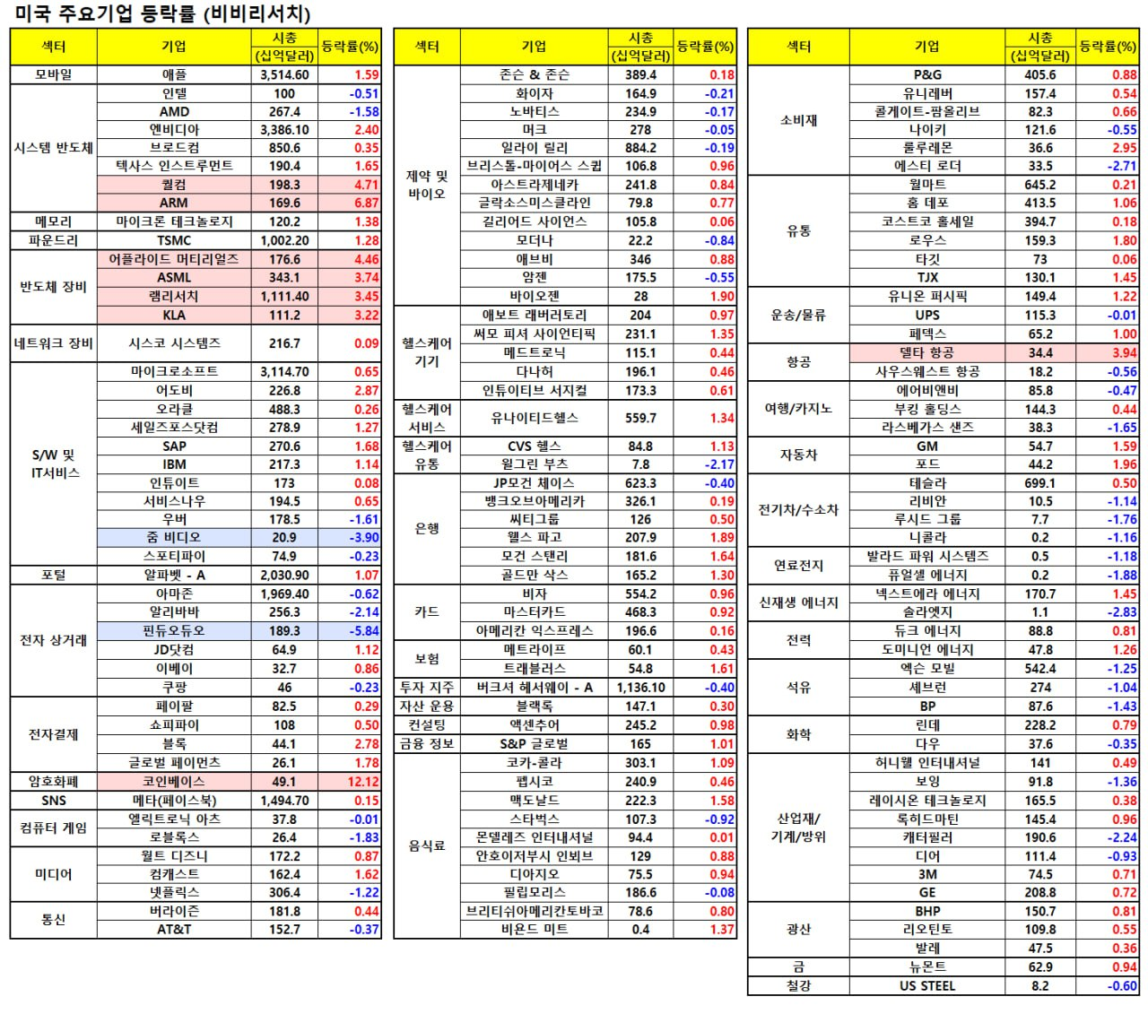 - AMAT(+4.31%), 램리서치(+3.39%), ASML(+3.76%) 등 반도체 관련 종목 동반 강세.