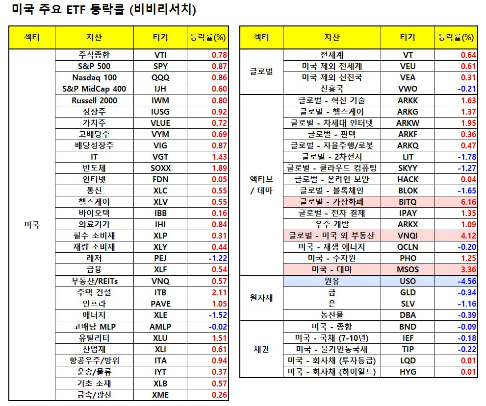 - 특히 TSMC(+0.73%)가 17일(목) 실적 발표를 앞두고 있는 가운데 AI 분야 수요 급증으로 이익이 40% 급증할 것이라는 분석회사들의 전망이 나와 관련 산업에 긍정적.