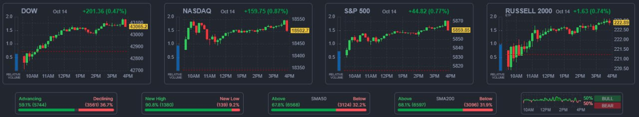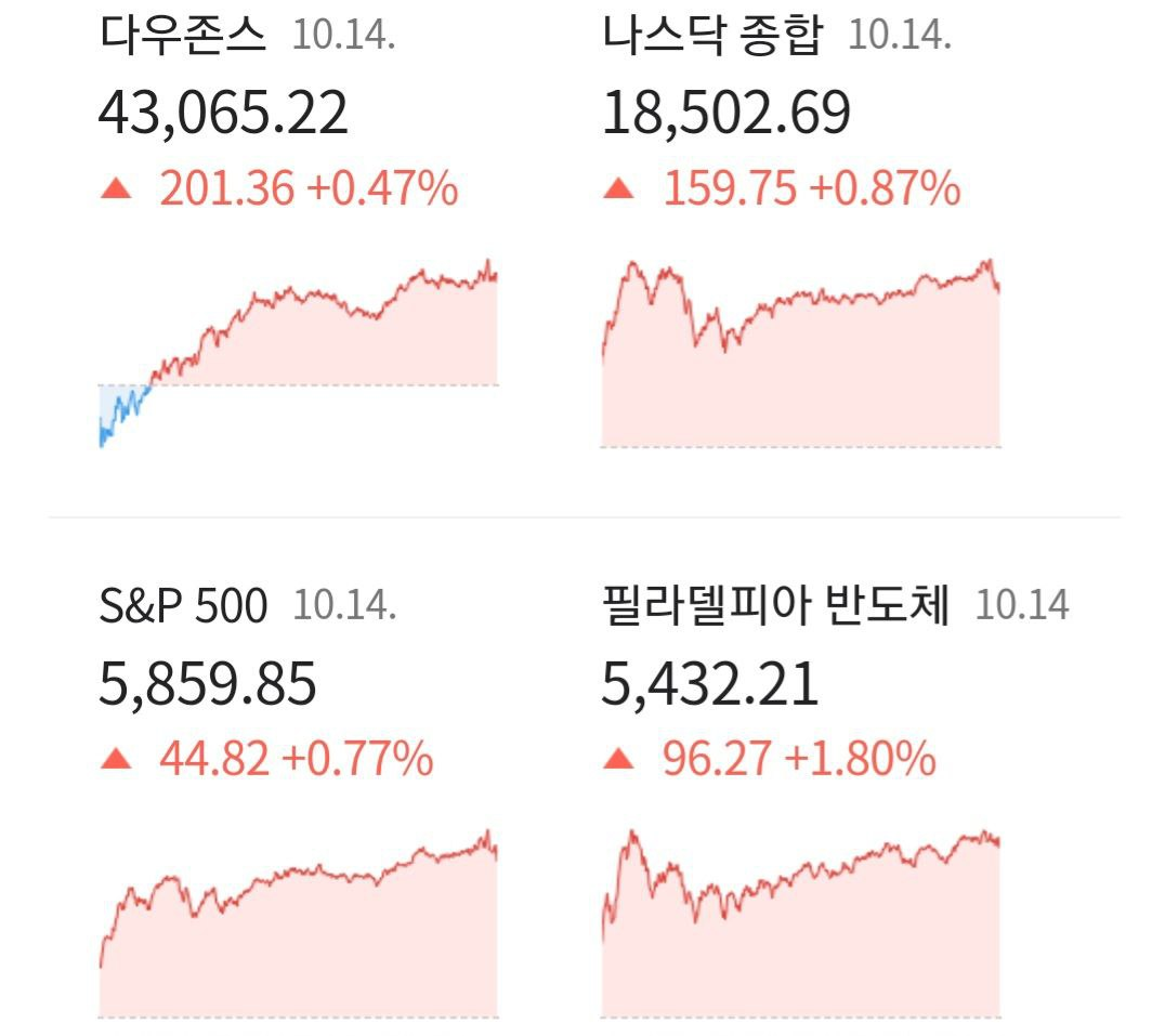 10월 15일 시황. 다우, S&P500, 엔비디아 사상 최고치