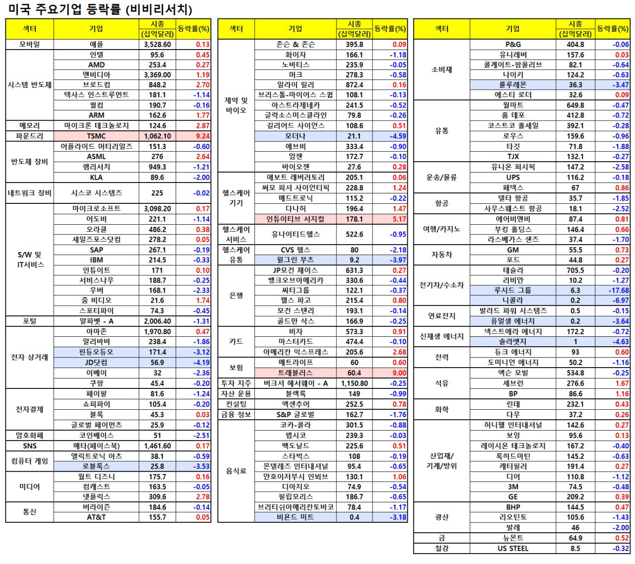 - 알파벳(-0.10%)도 약세를 보였지만, 광고 수익에 대한 기대로 하락은 제한.