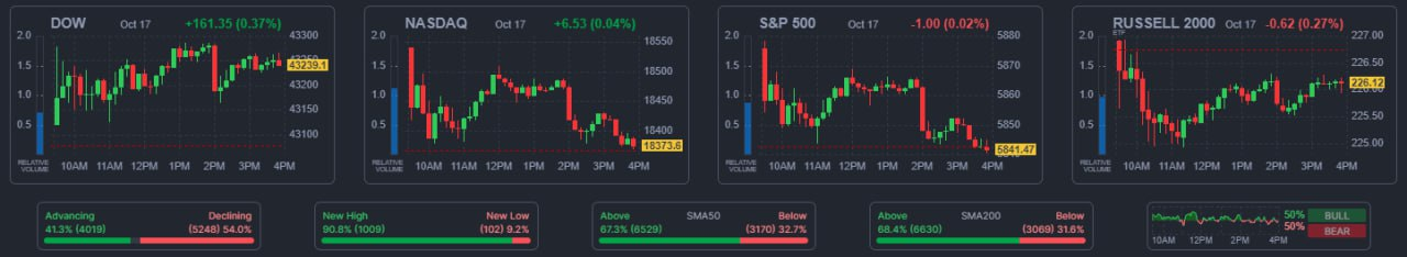 - 10/17 나스닥, 순환매 속 드러켄밀러 발언의 힘으로 엔비디아가 급등하자 상승 전환 성공