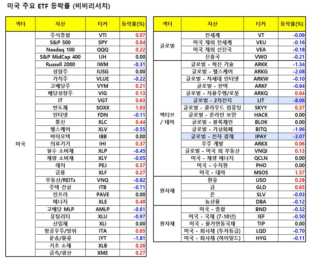 - MS(-0.63%), 메타 플랫폼(-1.62%)은 실적 발표 앞두고 매물 소화하며 하락.