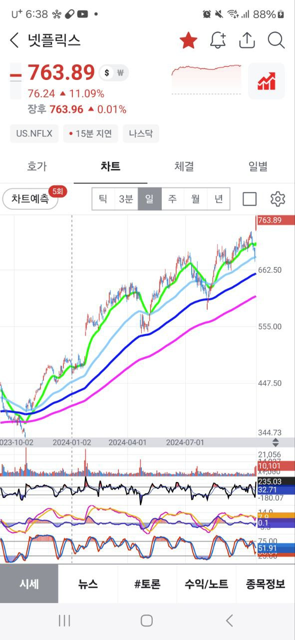 - 특히 넷플릭스가 11%나 급등하며 분위기 주도