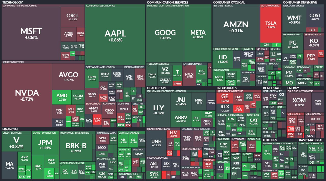 - 금융은 국채 금리 상승에 힘입어 오름세를 보였습니다/ 유틸리티도 상승했는데 독립 ⚡️전력 생산업체 및 ⚛️원자력 관련주가 아웃퍼폼했습니다