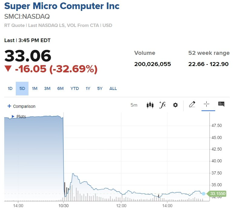 - 인공지능(AI) 서버 업체인 슈퍼 마이크로 컴퓨터가 회계 부정 의혹으로 32.69% 폭락했다.