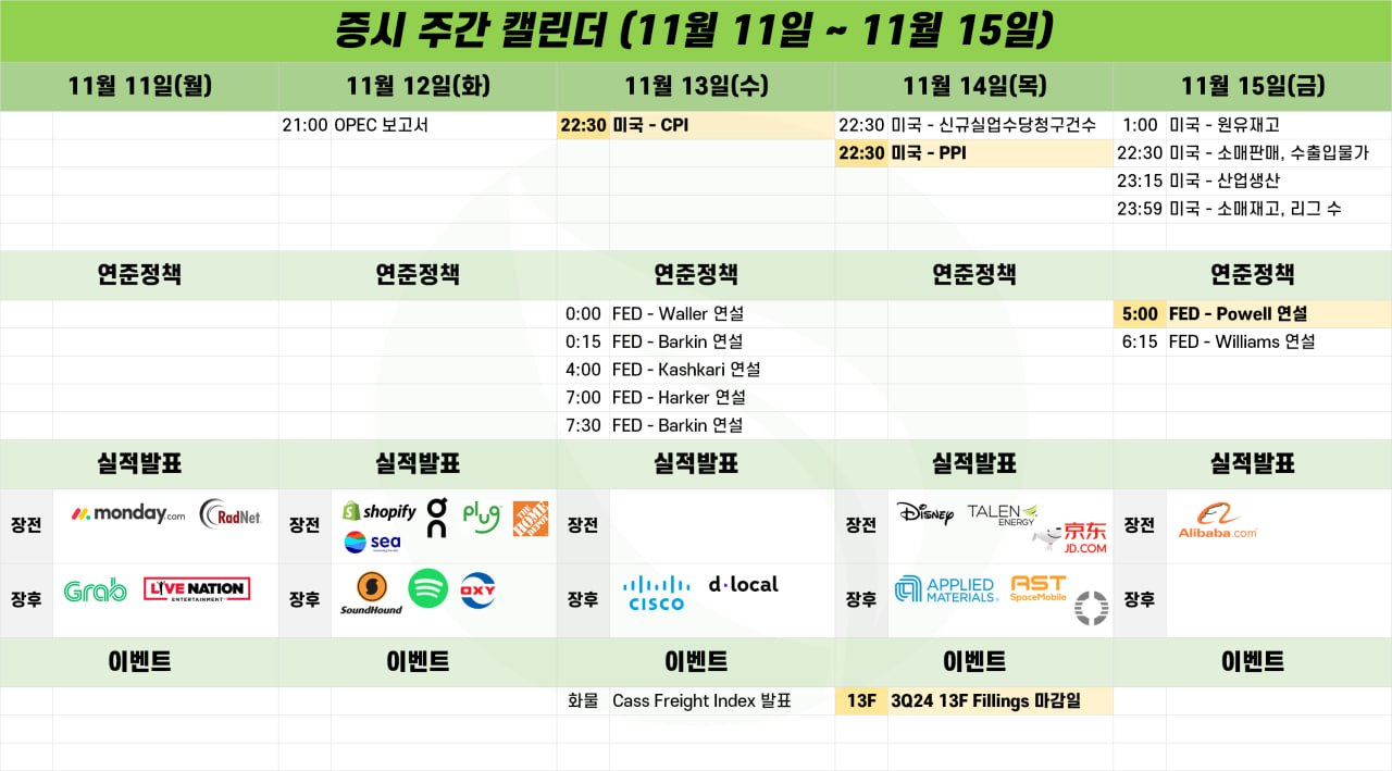 - 13일(현지시간) 10월 소비자물가지수(CPI), 14일 10월 생산자물가지수(PPI)가 나온다.