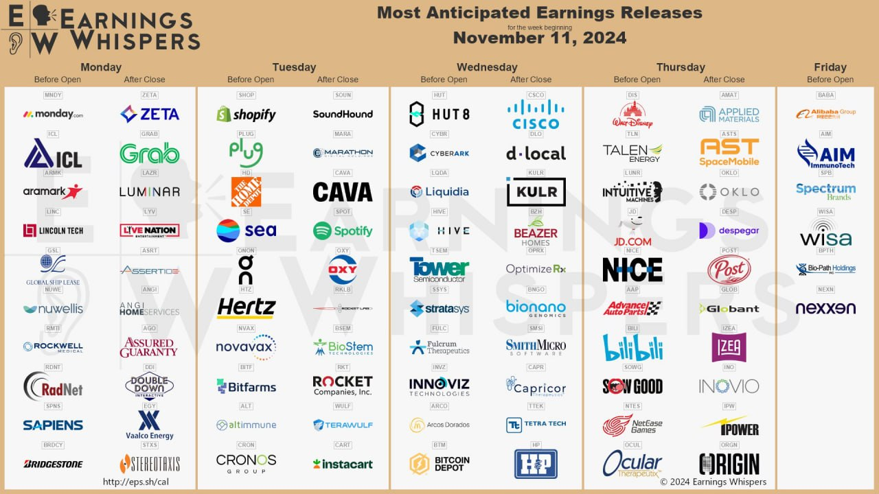 실적: 홈디포(HD), 아스트라제네카(AZN), 소피파이(SHOP), 스포티파이(SPOT), 옥시덴탈(OXY), 텐센트뮤직(TME), 스카이웍(SWKS) - 11/13(수)