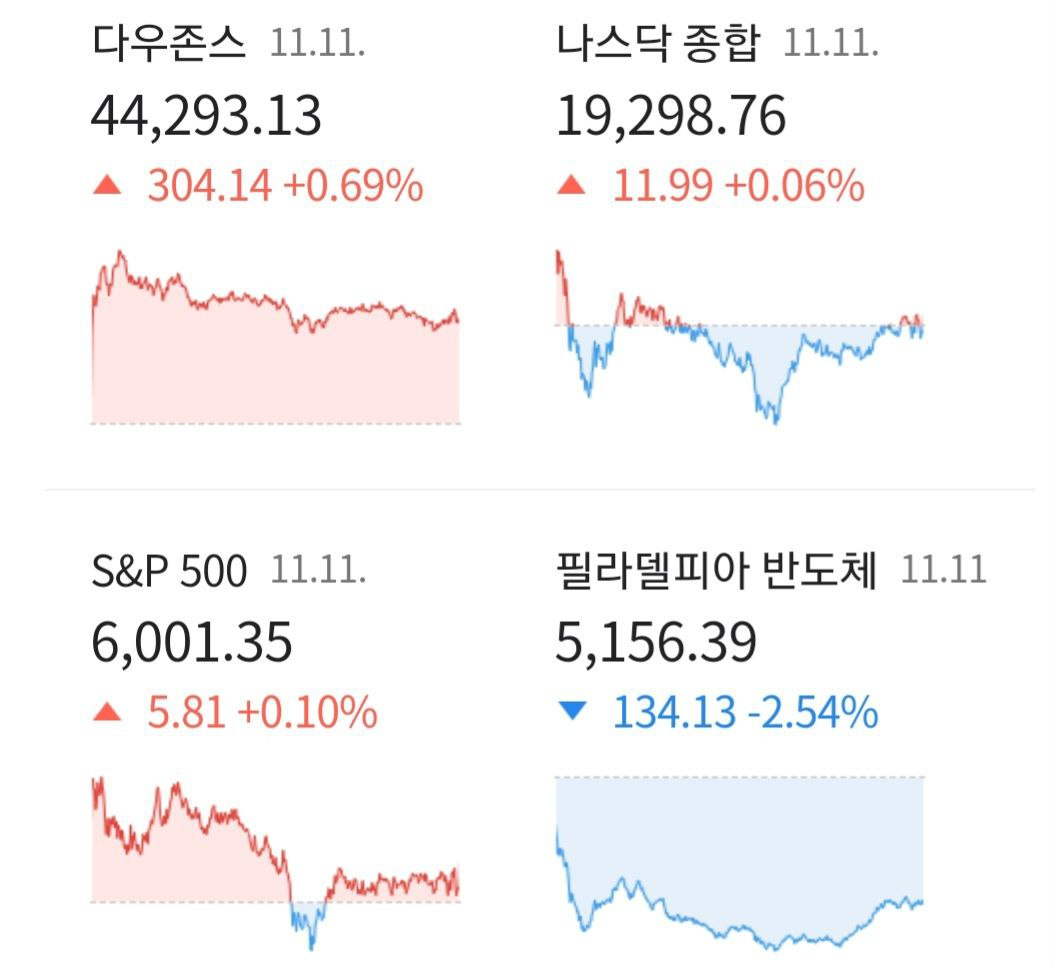 - 미국증시는 공화당 도널드 트럼프 전 대통령의 대선 승리 이후 주식시장은 랠리 지속중, 트럼프 수혜주로 여겨지는 테슬라는 이날도 9%대 급등