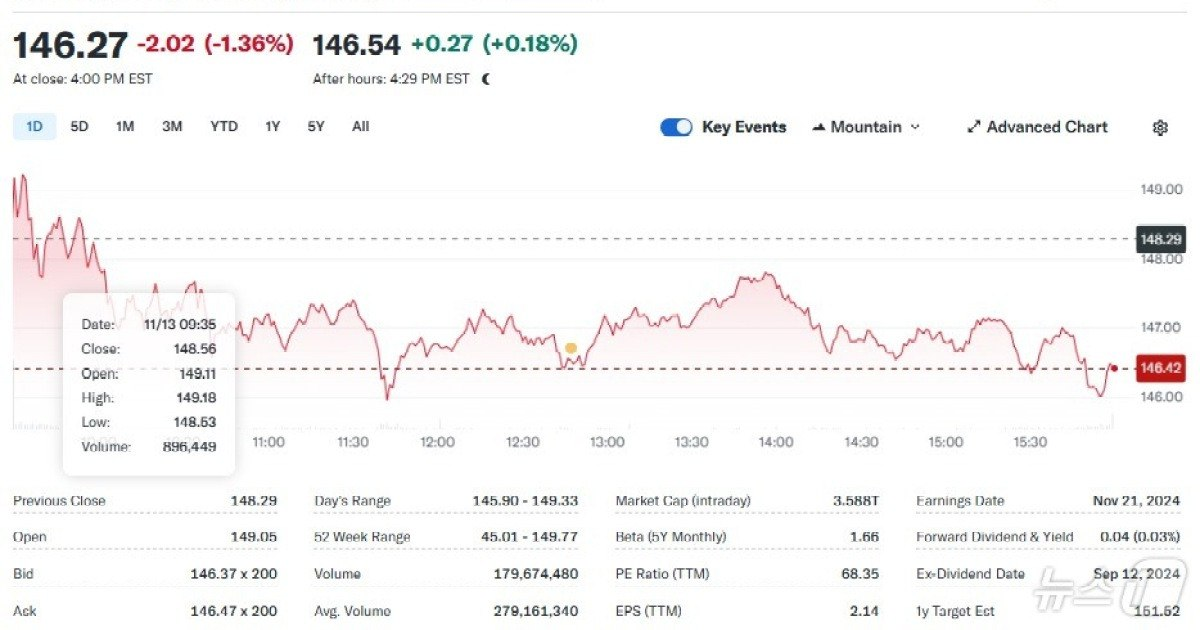 - 아마존 자체 AI칩 출시, 엔비디아 1.36% 하락