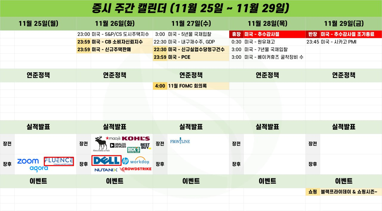 - 추수감사절 휴장, Fluence 및 DELL, FOMC 회의록과 PCE 지표를 확인하는 주