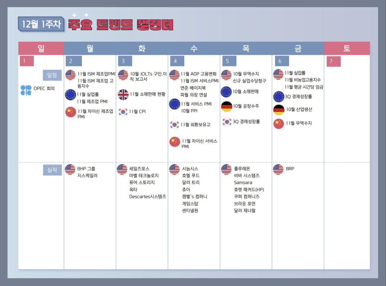 12/02 주간 이슈 점검: 고용보고서, ISM 제조업지수, 베이지북 등