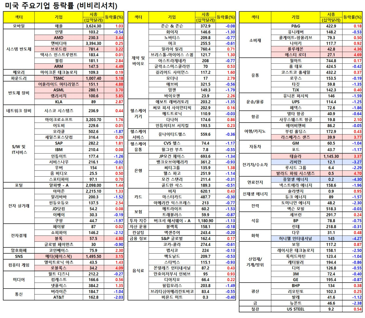 - 램리서치 5%, AMD과 브로드컴 3% 전후 상승
