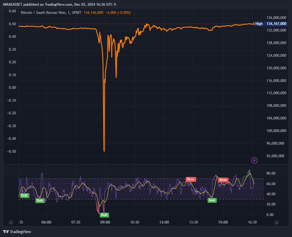 2, 한국의 정치적 혼란의 영향을 받아 원화는 달러 대비 2 % 이상 하락하고 iShares MSCI Korea ETF는 한때 약 7 % 하락했으며 한국의 암호 화폐 거래소 업비트 비트 코인은 한때 30 % 하락한 66,500 달러에 달했습니다. 한국 재무부는 한국 주식 시장이 오늘 정상적으로 개장 할 것이라고 밝혔다.