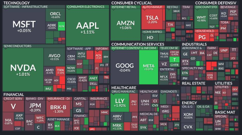 - 아마존(+1.30%)은 최신 자체 AI 칩인 Trainium3를 공개하자 상승.