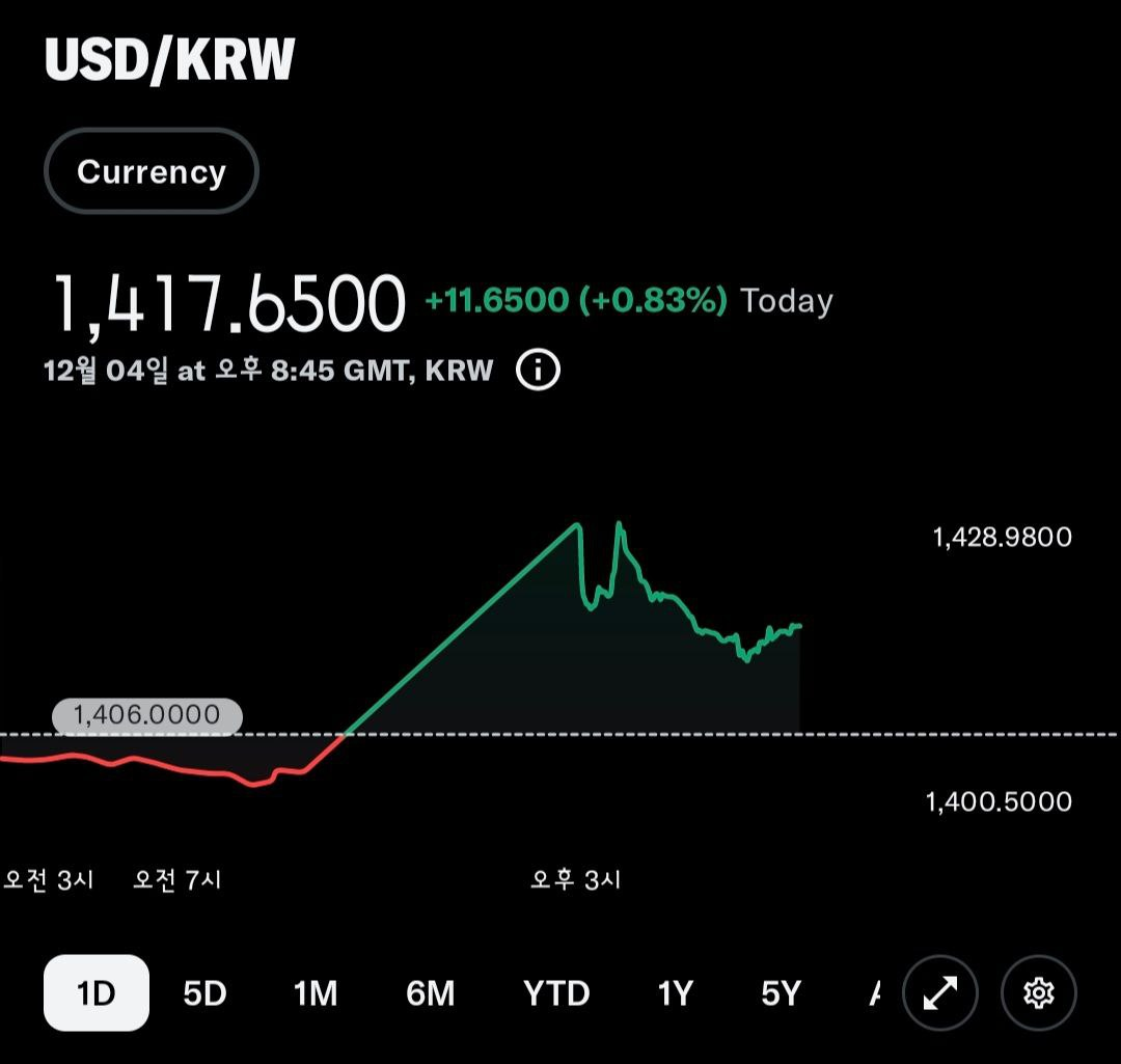 - 장중 한국 계엄령 이슈로 금융 시장 출렁거리기도