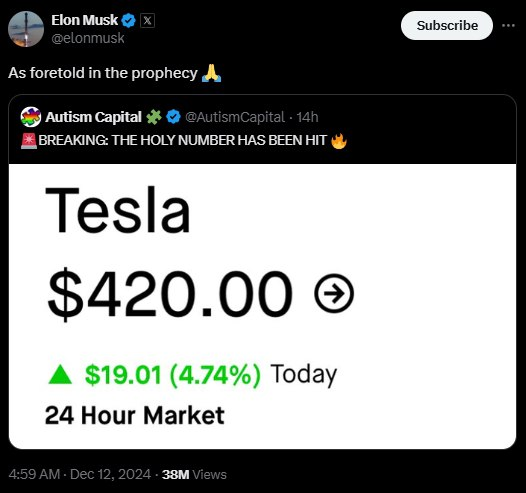 · ‘국민 서학주’ 테슬라 역대최고가 경신···머스크 600조원 부호 등극
