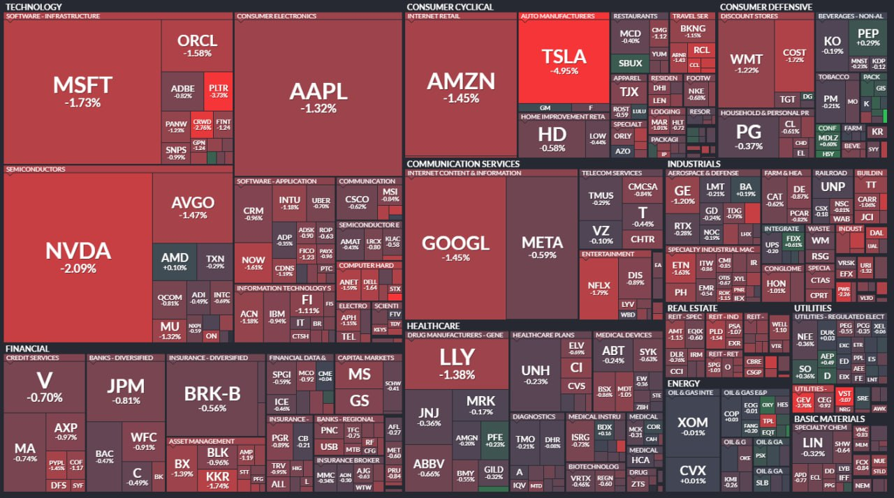- *특징 종목: 테슬라, 엔비디아 등 대부분 종목 하락