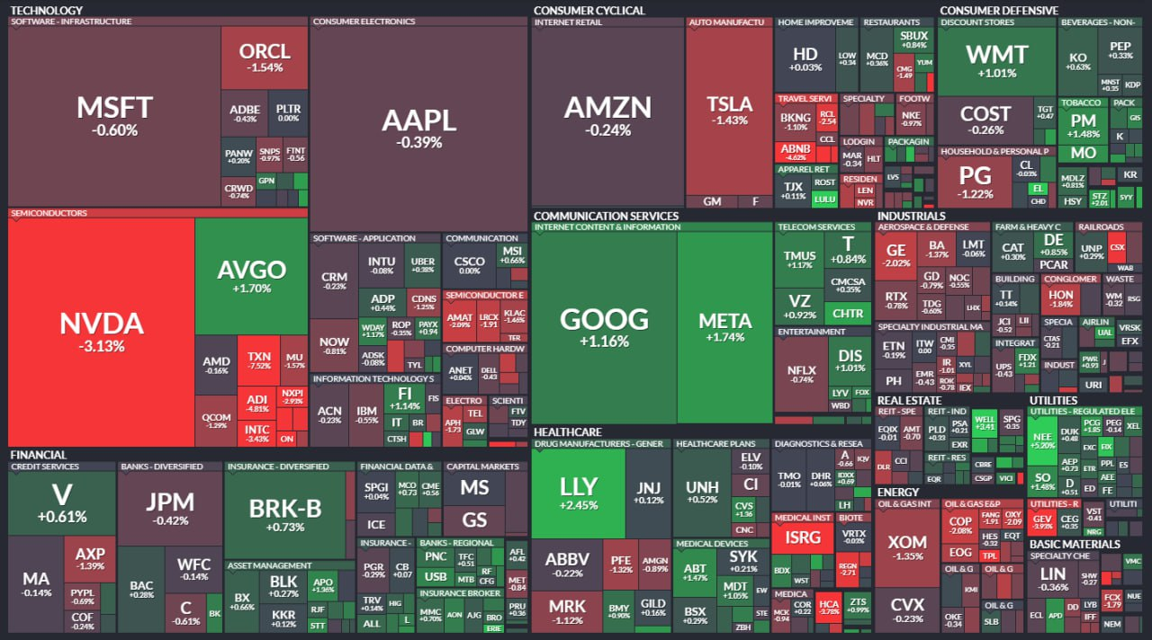 - DOW ▼ 44,424.25 (-0.3%)