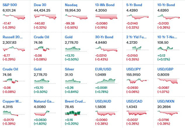 - S&P500 ▼ 6,101.24 (-0.3%)