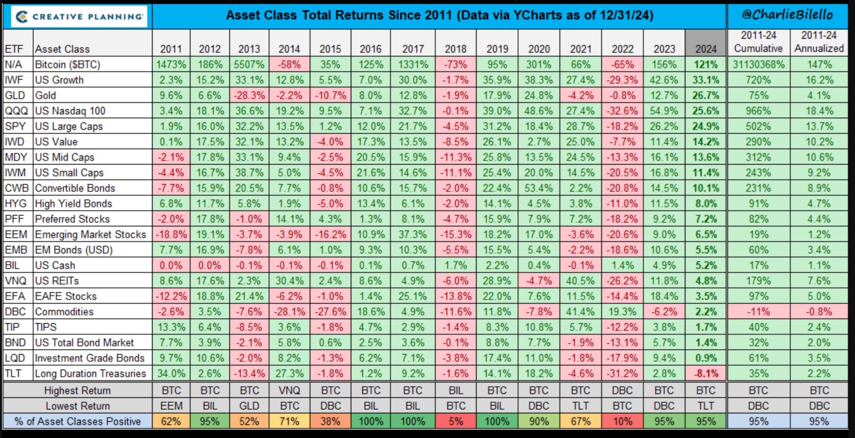 - 지난 한 해 시장을 이끌었던 엔비디아(-2.33%), 테슬라(-3.25%), 팔란티어(-2.01%) 등 대부분 기술주가 하락했으며 작년 최악의 주가 부진(-60% 이상 하락)을 기록한 인텔은 +1.16% 소폭 상승 마감했습니다