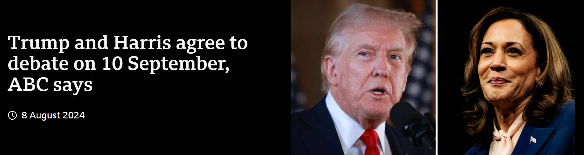 - 당초 트럼프 전 대통령은 조 바이든 대통령과 9월 10일에 ABC 뉴스 주최 토론을 하기로 합의했었다.