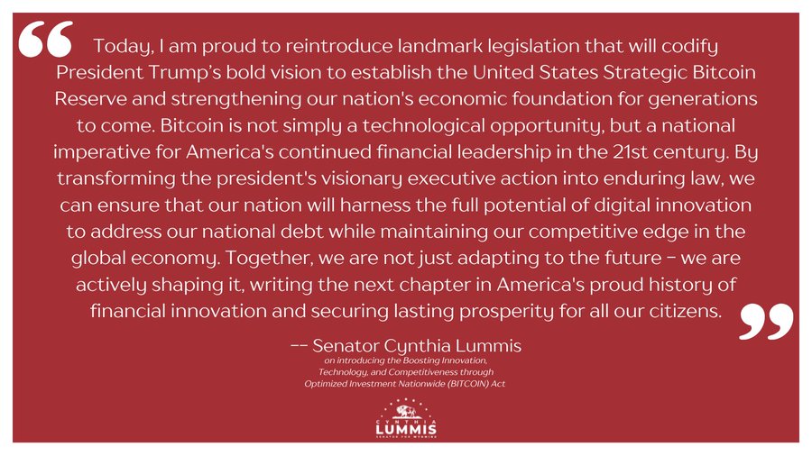 - 신시아 루미스, '비트코인(BTC) 비축안' 공식화 법안 재발의