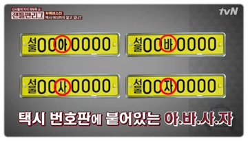 - 택시는 '아', '바', '사', '자' 이 네 가지 문자가 사용된다.
