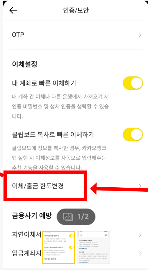 카카오뱅크 이체한도 확인및 변경방법