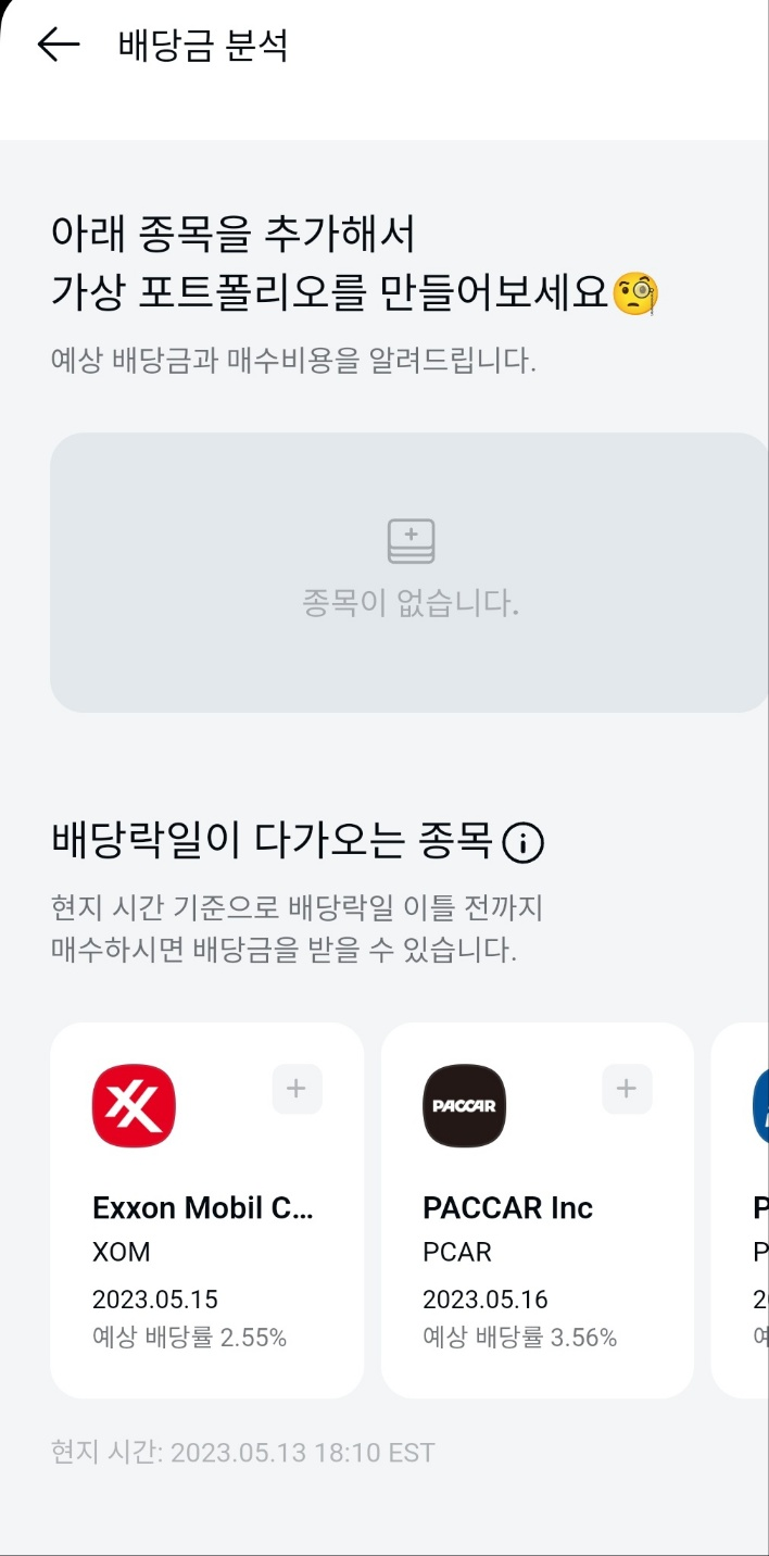 - 배당주를 보유하고 있지 않아도 투자예상 종목을 추가하면 예상 배당금과 매수비용을 알 수 있어요.