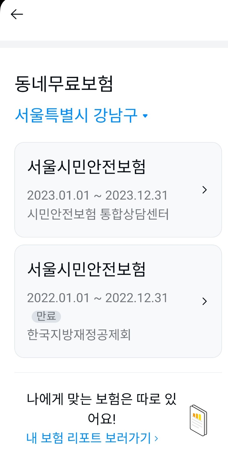 사용자 거주 지역을 기반으로 가입된 내역이 자동으로 불러오고 다른 지역 가입의 내역도 확인 가능합니다