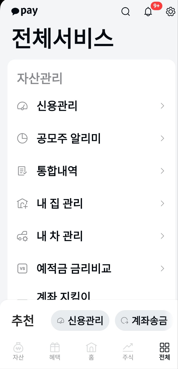 메인 화멘에서 밑에 오른쪽에 있는 전체를 누르세요